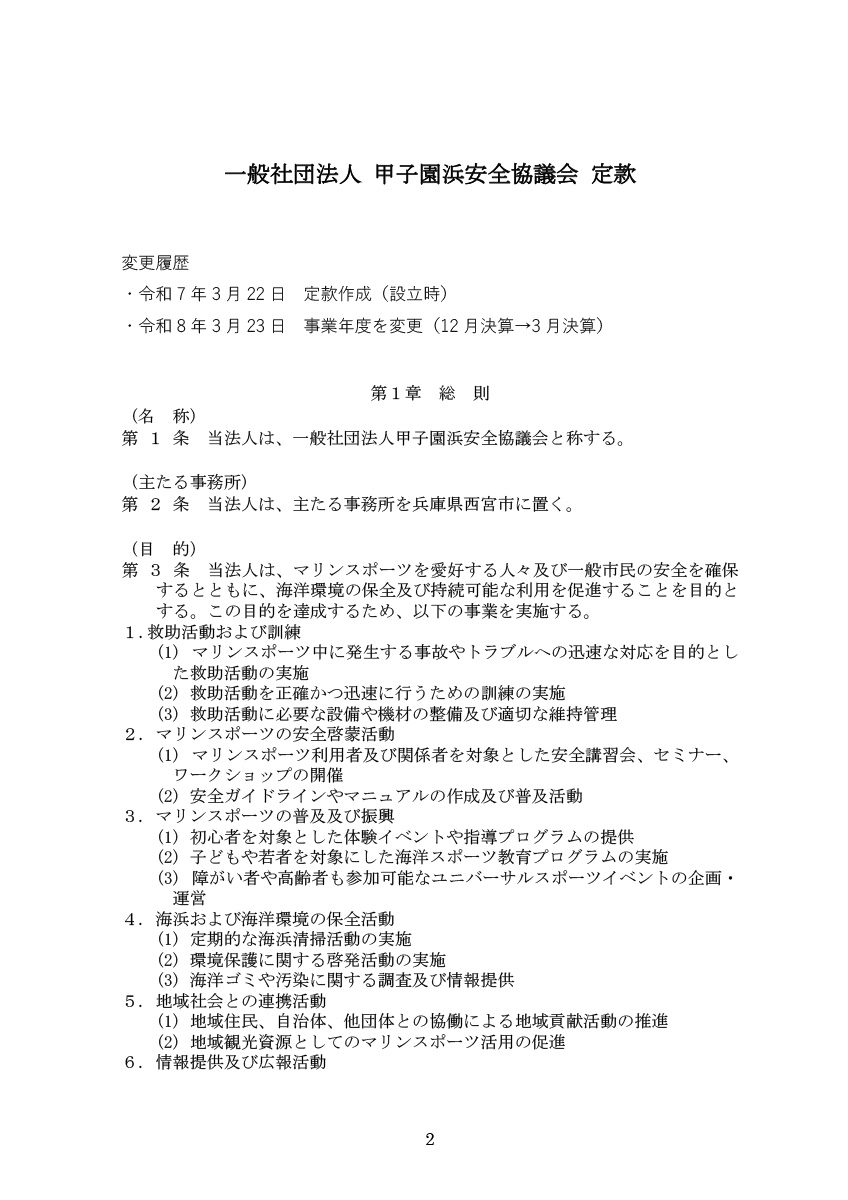 2025年 (非営利型)一般社団法人甲子園浜安全協議会を設立しました。